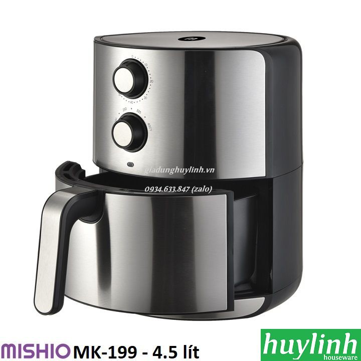 Nồi chiên không dầu Mishio MK199 với thiết kế mới năm 2020, dung tích 4.5 lít, có thời gian hẹn giờ lên tới 60 độ, nhiệt độ dễ dàng điều chỉnh từ 80 – 200 độ C.Huy Linh phân phối và bảo hành chính hãng tại Mishio Việt Nam