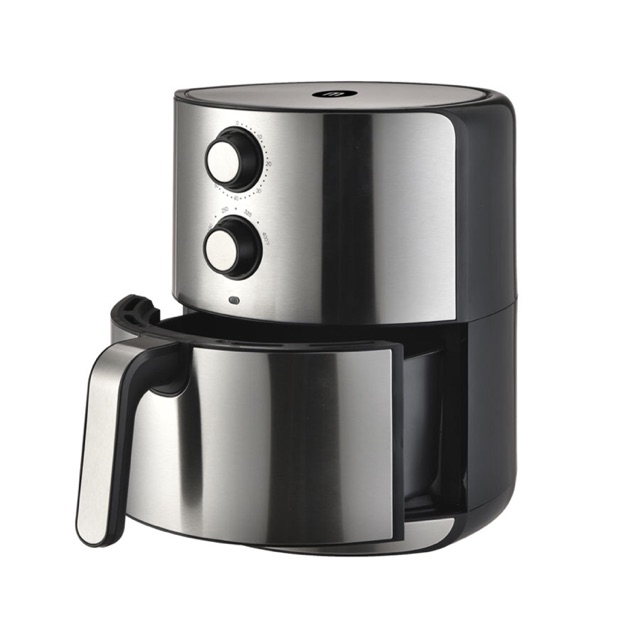 - Nồi chiên không dầu Mishio thiết kế kiểu dáng mới lạ và đẹp mắt hơn với lớp vỏ ngoài làm từ inox 410 kết hợp với nhựa PP cho độ bền cao.