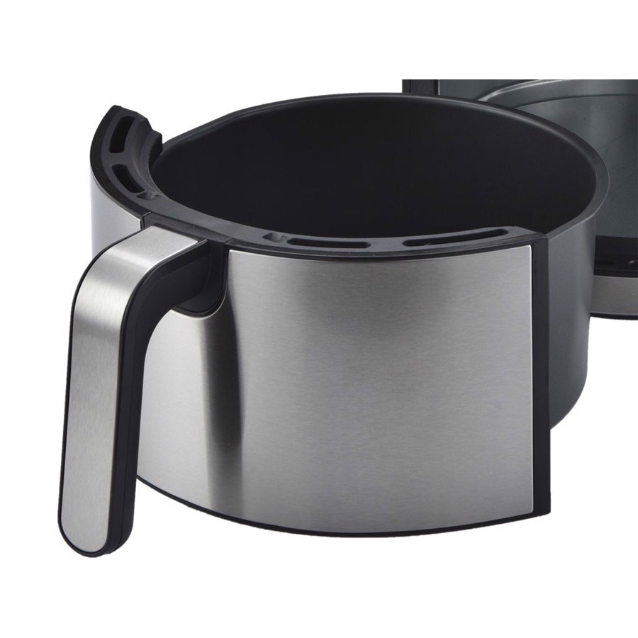 - Khay nồi chiên có tay cầm chống nóng, tiện lợi và an tâm sử dụng. Vỉ chiên có thể tháo rời để vệ sinh thuận tiện.
