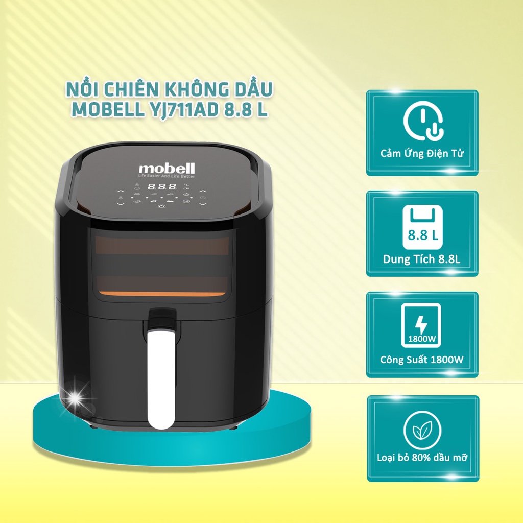 Nồi Chiên Không Dầu mobell YJ-711 Công Suất 1800W Dung Tích 8.8L Điều Khiển Cảm Ứng Kính Trong Suốt
