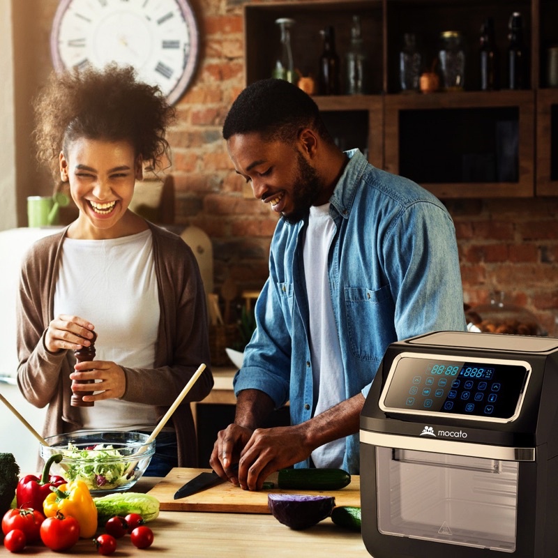 Bạn có thể làm nhiều hơn là chỉ chiên, Mocato cũng nướng, quay, làm bánh và thậm chí hâm nóng. Màn hình cảm ứng kỹ thuật số đi kèm với 10 cài đặt trước giúp bạn dễ dàng quyết định nhiệt độ nào là tốt nhất để nấu thức ăn của mình và chức năng giữ ấm đảm bảo thức ăn của bạn luôn sẵn sàng.