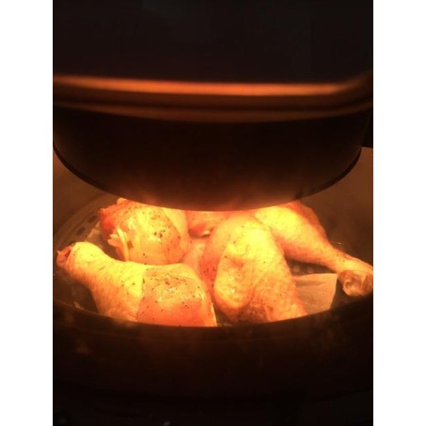 - Nồi chiên không dầu Nine Shield 8L 2021 sử dụng công nghệ đốt nóng chân không Rapid air từ bóng đèn Halogen không sản sinh khói, giảm mùi trong thực phẩm, sử dụng tối đa luồng không khí nóng để chiên, nướng thức ăn, giúp thức ăn chín nhanh mà không bị khô, vẫn giữ lượng nước và mùi vị của thức ăn ( Nồi chiên thường dùng dây mai so không đảm bảo an toàn sức khỏe).