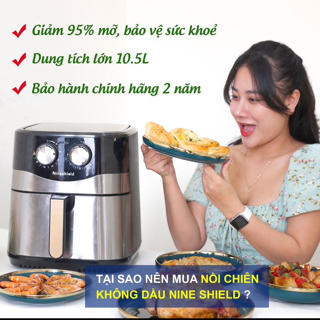 👑 ĂN NGON QUÊN SẦU với nồi chiên không dầu NINESHIELD 10L 👑👑