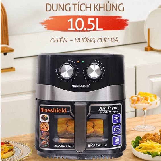 Nồi Chiên Không Dầu Nine Shield 10,5 Lít Có Kính Bảo Hành 24 Tháng