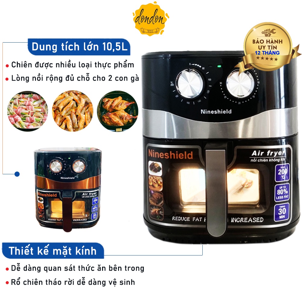 Thiết Bị Điện Gia Dụng > Đồ gia dụng nhà bếp > Nồi chiên không dầu || [Mã 44ELSALE2 giảm 7% đơn 300K] NỒI CHIÊN KHÔNG DẦU NINE SHIELD DUNG TÍCH LỚN 10.5LCòn hàng