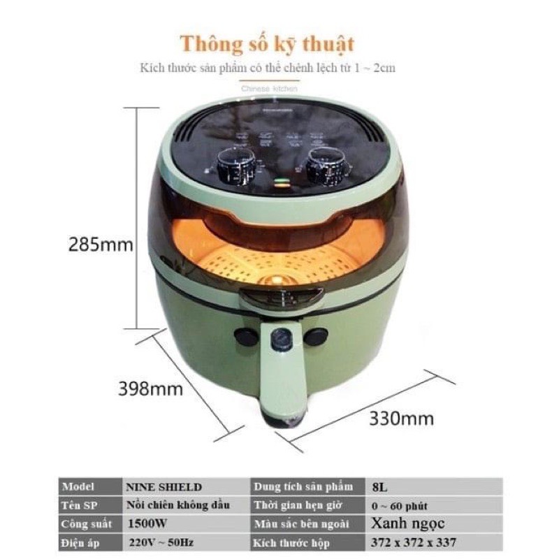 Nồi chiên không dầu nine shield 8l mới nhất 2021(LOẠI CƠ ) Nồi chiên không dầu nine shiled 8l