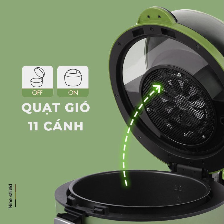 Giới thiệu Nồi chiên không dầu Nine Shield FREESHIP Hàng chính hãng_núm xoay cơ_giảm dầu mỡ_tốt cho sức khỏe_BH 12 THÁNG