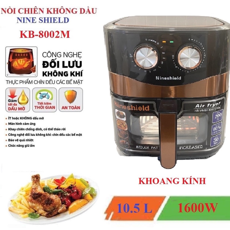 Thiết Bị Điện Gia Dụng > Đồ gia dụng nhà bếp > Nồi chiên không dầu || NỒI CHIÊN KHÔNG DẦU NINESHIELD 10.5 LÍT KB-8002M/ 10L KB-8001M/ 8L KB-6001M CHIÊN CẢ CON GÀ TẶNG CHỔI QUÉT DẦU)Còn hàng