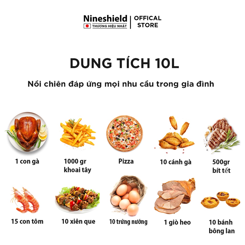 Nếu đang có nhu cầu mua Nồi chiên không dầu 10L NINESHIELD KB-8001M hãy đến với gian hàng Nineshield chính hãng để:
