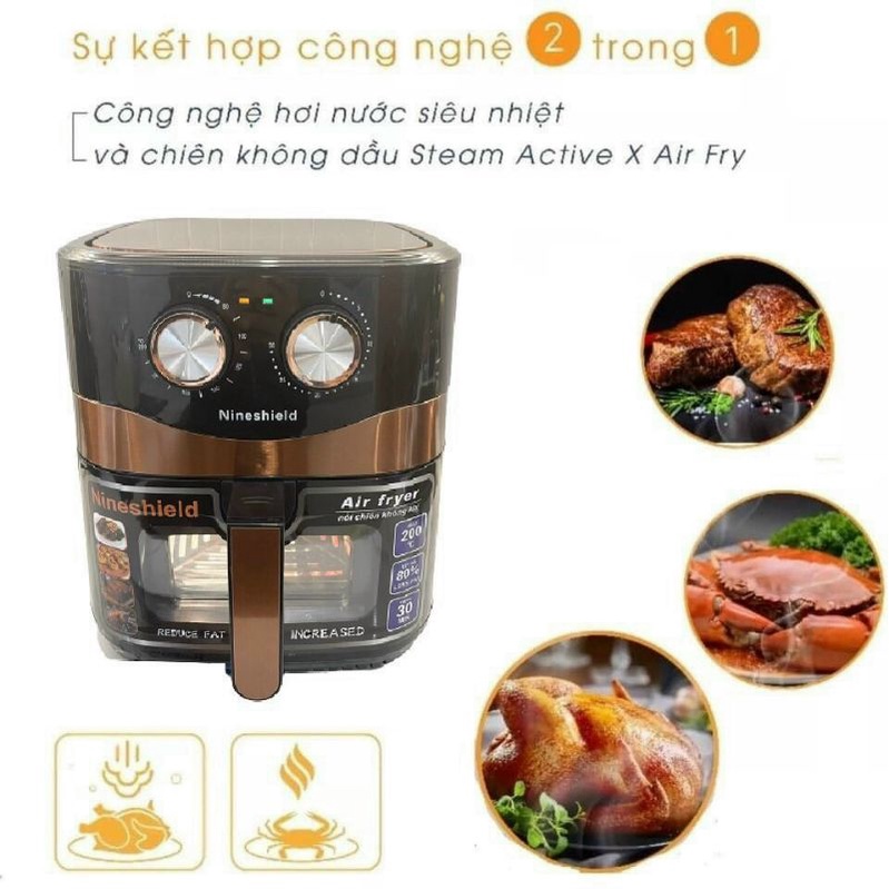 Thiết Bị Điện Gia Dụng > Đồ gia dụng nhà bếp > Nồi chiên ngập dầu || nồi chiên không dầu nineshield 10.5L mẫu mới cửa sổ kínhCòn hàng