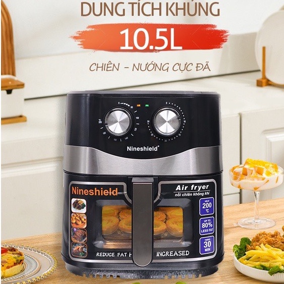 NỒI CHIÊN KHÔNG DẦU NINESHIELD 10L KB-8001M DUNG TÍCH CỰC LỚN