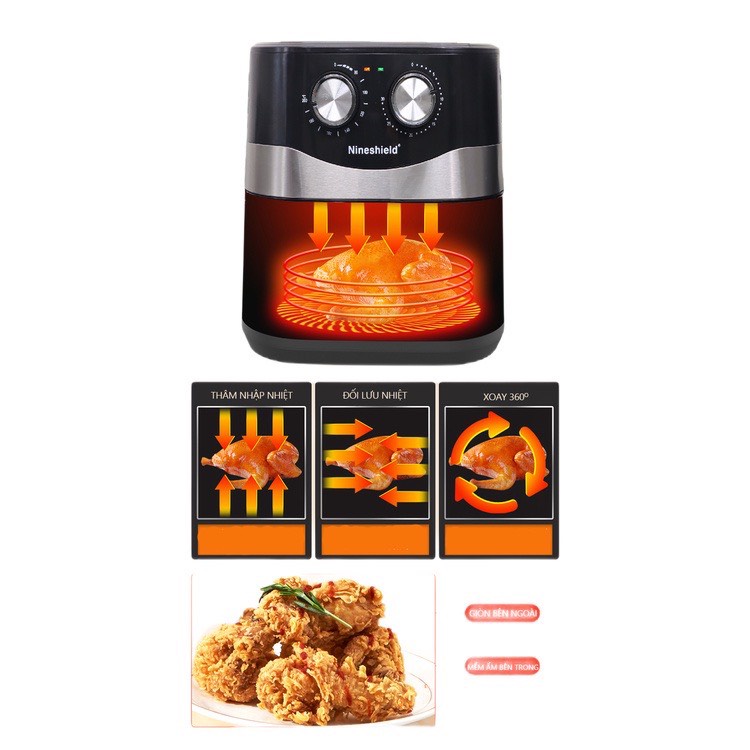 Giới thiệu NỒI CHIÊN KHÔNG DẦU NINESHIELD 10L KB-8001M DUNG TÍCH CỰC LỚN