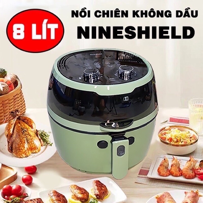 [Mã ELHADEV giảm 4% đơn 300K] ☘️Nồi Chiên Không Dầu NINESHIELD 8L Khoang Kính Có Lưỡi Đảo