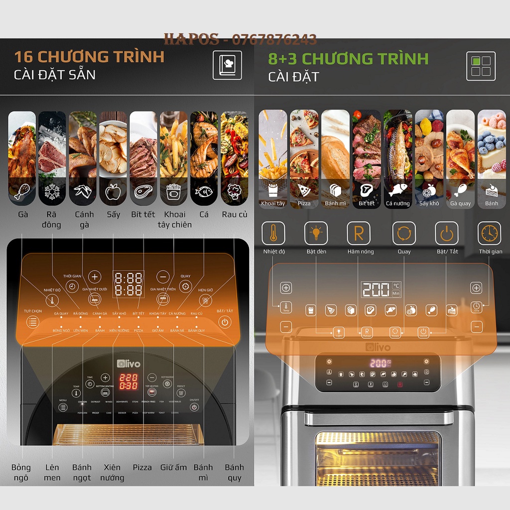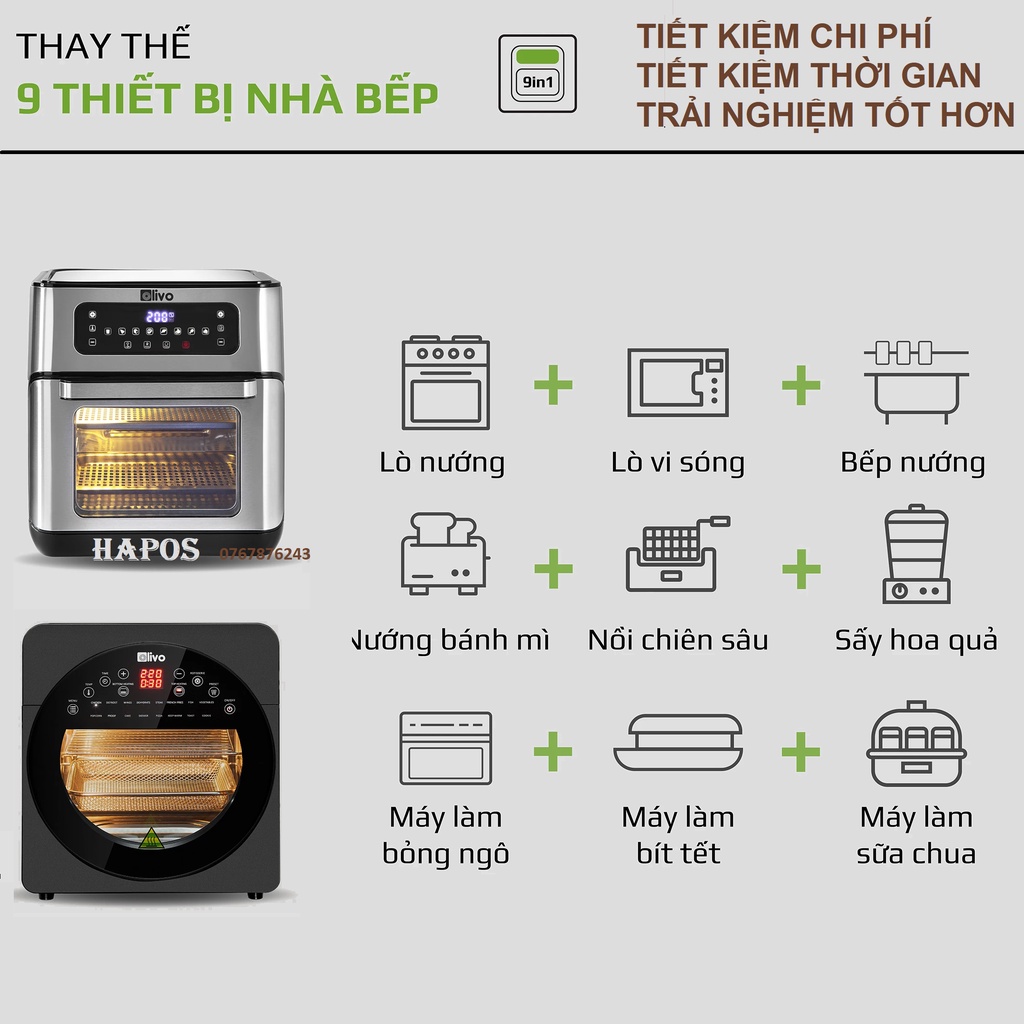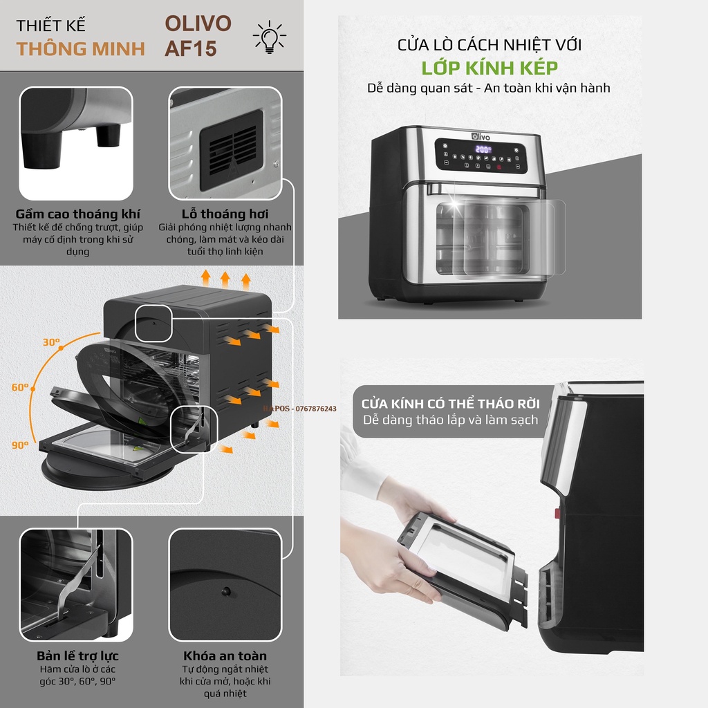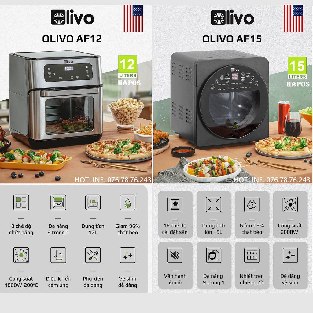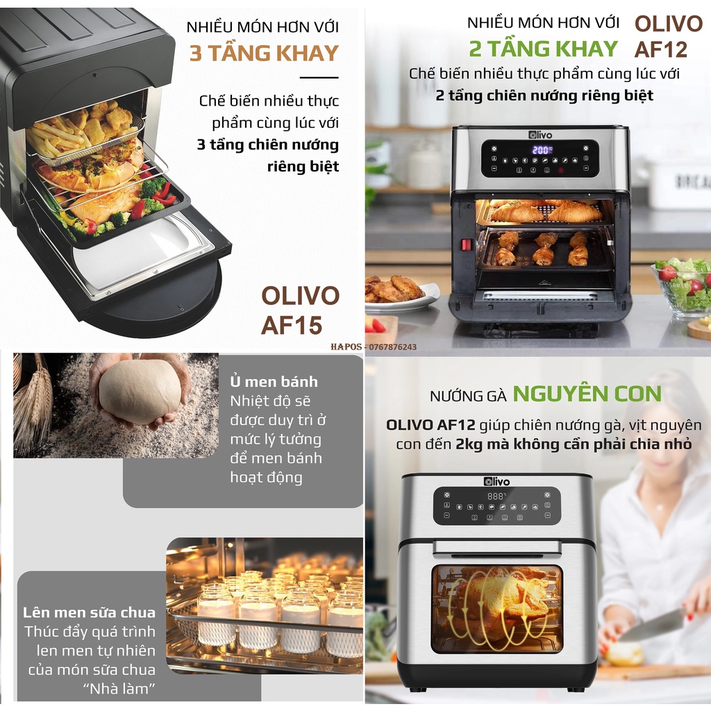 Giới thiệu Nồi chiên không dầu OLIVO AF12/ AF15 thương hiệu Mỹ cảm ứng đa chức năng tặng thảm - HAPOS