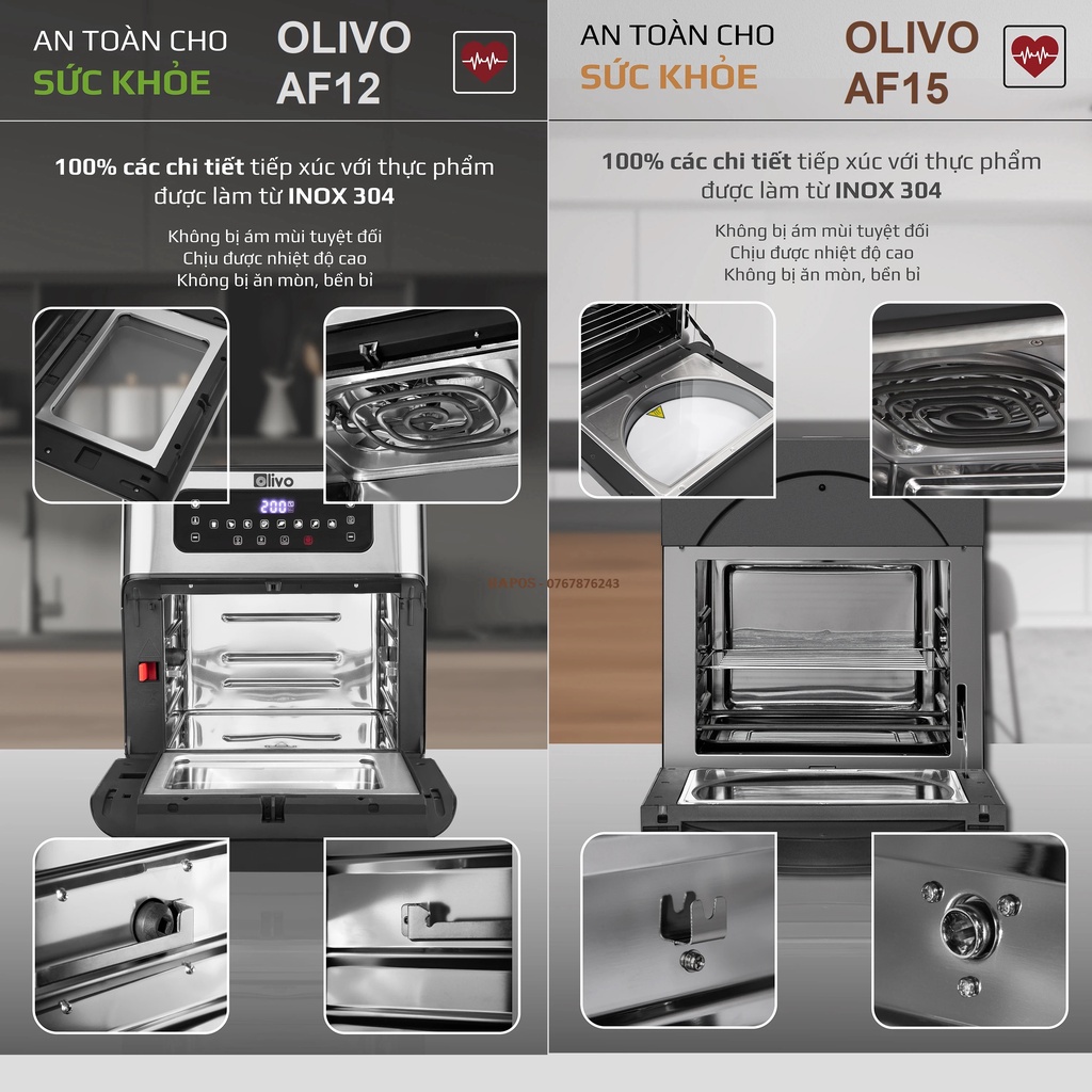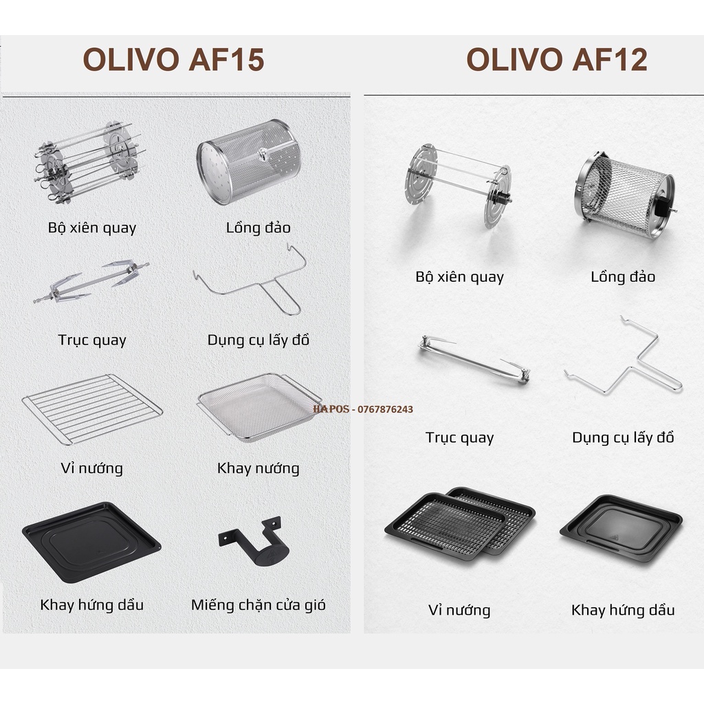 Thiết Bị Điện Gia Dụng > Đồ gia dụng nhà bếp > Nồi chiên không dầu || Nồi chiên không dầu OLIVO AF12/ AF15 thương hiệu Mỹ cảm ứng đa chức năng tặng thảm - HAPOSCòn hàng