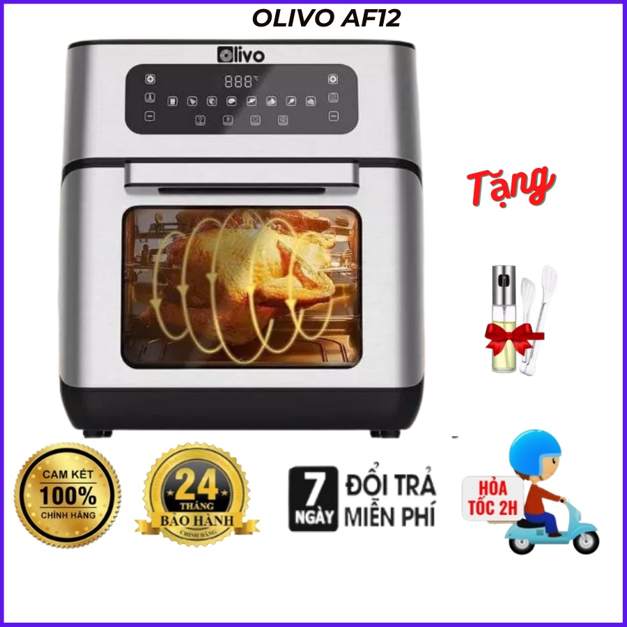 Giới thiệu Nồi chiên không dầu Olivo Af12, bếp chiên không dầu 12L, có trục xoay chiên gà nguyên con, Chính hãng Olivo, Kèm quà