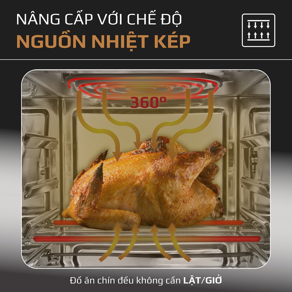 ☆ Dung tích siêu lớn và giá đỡ lưu thông không khí 3 lớp - Chiên gà, vịt nguyên con lên đến 2kg vô cùng dễ dàng và tiện lợi.