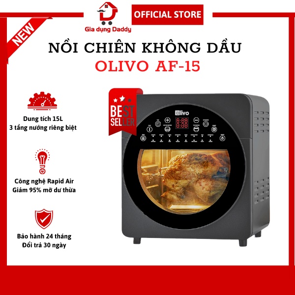 Nồi chiên không dầu Olivo AF15 Dung tích 15L, Thương hiệu Mỹ, 16 chế độ tự động, Giảm 95% mỡ dư thừa, Bảo hành 24 tháng