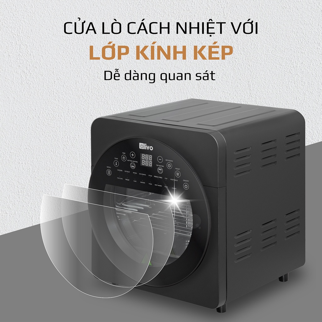 Giới thiệu Nồi chiên không dầu Olivo AF15 Dung tích 15L, Thương hiệu Mỹ, 16 chế độ tự động, Giảm 95% mỡ dư thừa, Bảo hành 24 tháng