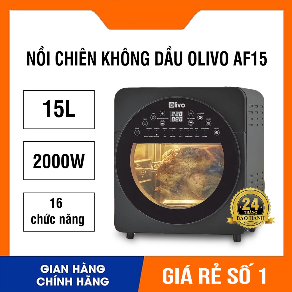 Thiết Bị Điện Gia Dụng > Đồ gia dụng nhà bếp > Nồi chiên không dầu || Nồi Chiên Không Dầu OLIVO AF15 Dung Tích 15L, Nồi Chiên Không Dầu 16 Chức Năng - Hàng Chính Hãng Bảo Hành 24 ThángCòn hàng