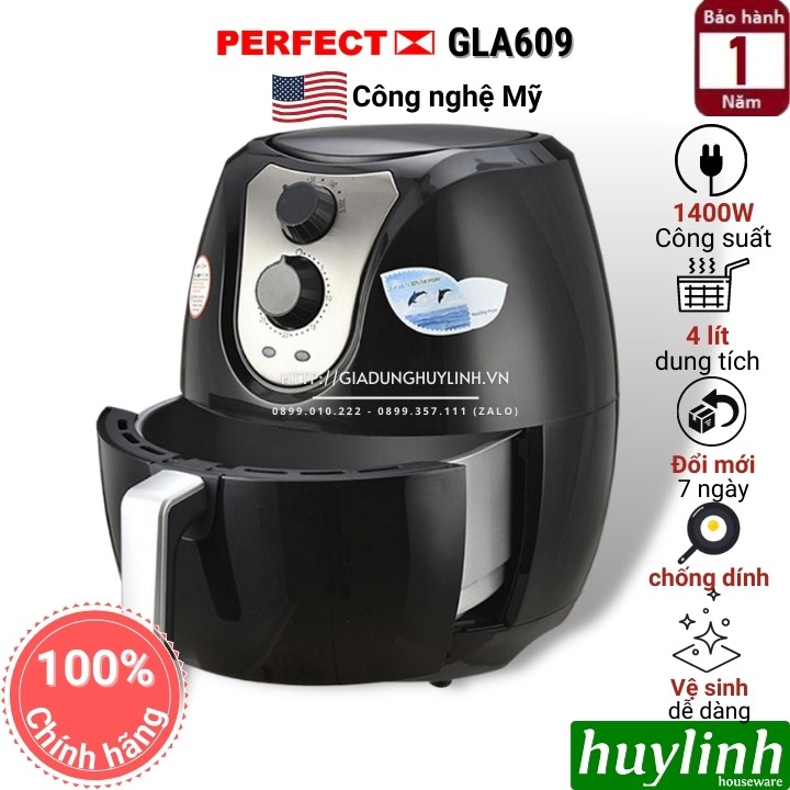 [Mã ELHAMS5 giảm 6% đơn 300K] Nồi chiên không dầu Perfect GLA609 - 4 lít - 1400W