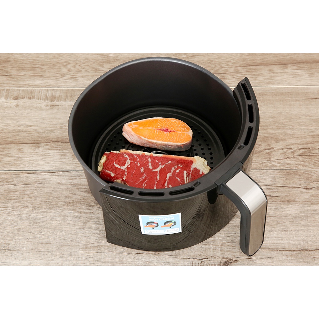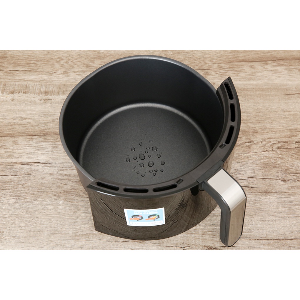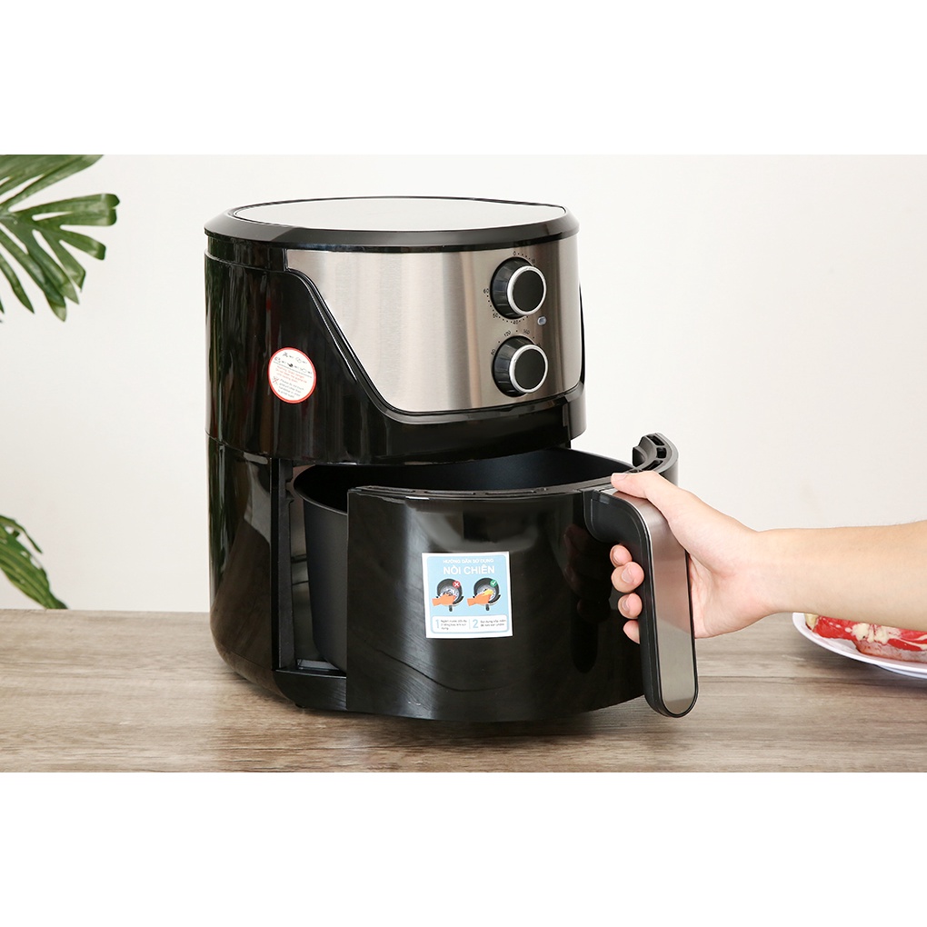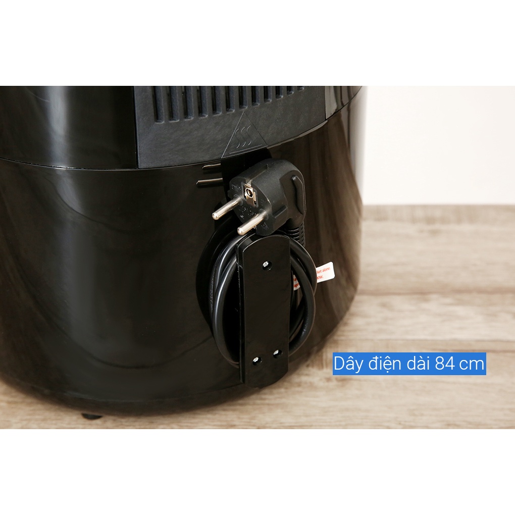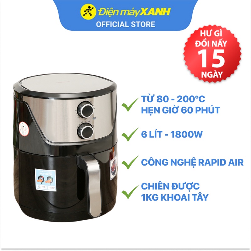 ●Nồi chiên không dầu có tổng dung tích 6 lít, dung tích sử dụng 5.5 lít có thể chiên, nướng gà nguyên con dưới 1.5 kg●Công suất 1800W, công nghệ Rapid Air cùng quạt đối lưu luân chuyển khí nóng 360°