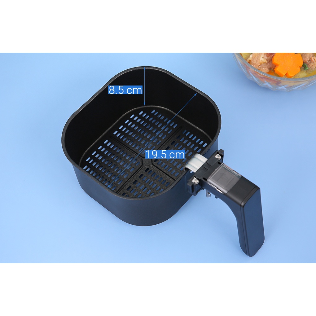 Dung tích lòng nồi 4.1 lít, dung tích rổ chiên 2.4 lít chiên được khoảng 2 - 4 đùi gà