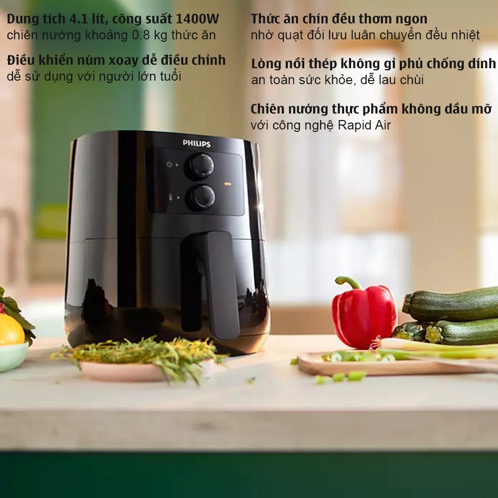 Nồi Chiên Không Dầu Philips HD9200-90 1400W 4.1 Lít– Chính Hãng Phân Phối – Bảo Hành 24 ThángCHÍNH SÁCH BÁN HÀNG