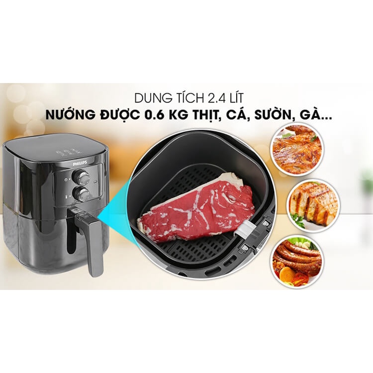 Nồi chiên không dầu với khay chứa thực phẩm dung tích 2.4 lít, chiên nướng khoảng 0.6 kg thức ăn