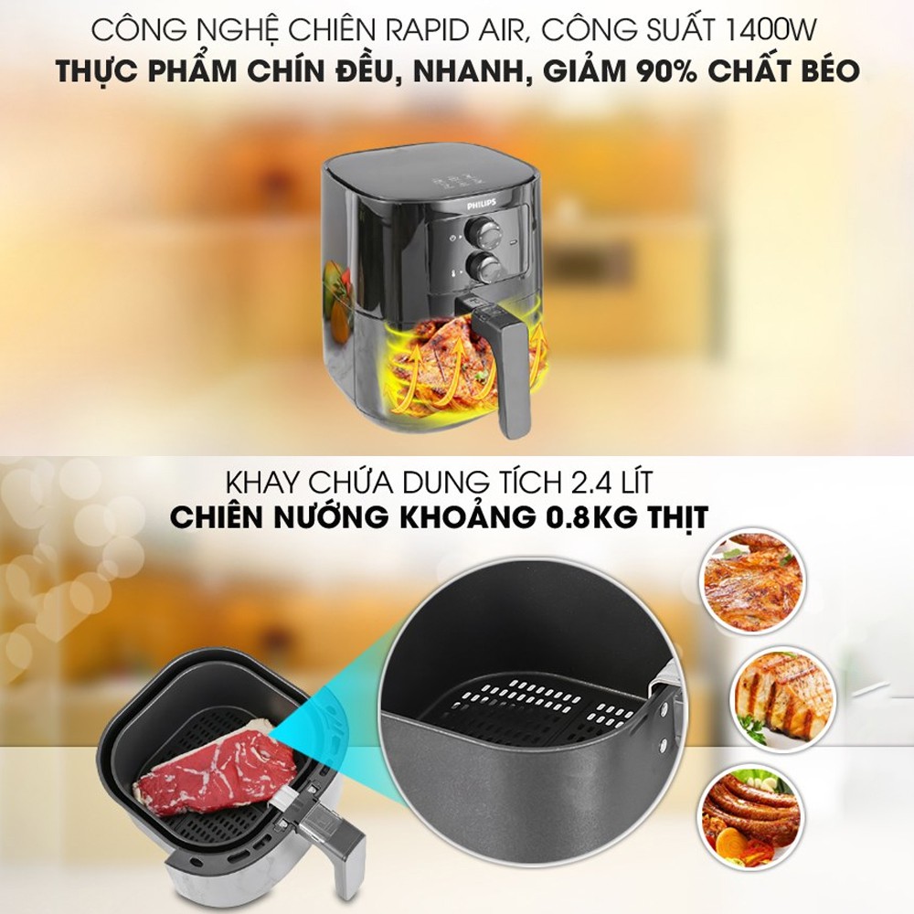 Nồi Chiên Không Dầu Philips HD9200-90 1400W 4.1 Lít– Chính Hãng Phân Phối – Bảo Hành 24 ThángCHÍNH SÁCH BÁN HÀNG