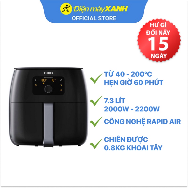 Thiết Bị Điện Gia Dụng > Đồ gia dụng nhà bếp > Nồi chiên không dầu || [Mã ELMALL1TR giảm 5% đơn 3TR] Nồi chiên không dầu Philips HD9650 7.3 lít công suất 2200W - Hàng chính hãng BH 24 thángCòn hàng