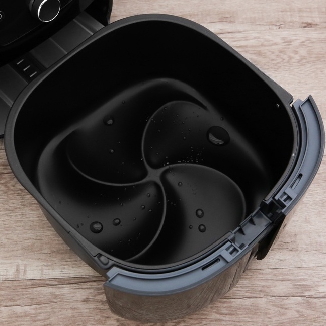 ● Có rổ chiên và khay chiên bằng thép truyền nhiệt tốt, giữ nhiệt lâu, phủ chống dính hạn chế thức ăn dính cháy, vệ sinh nhanh chỉ trong 90 giây
