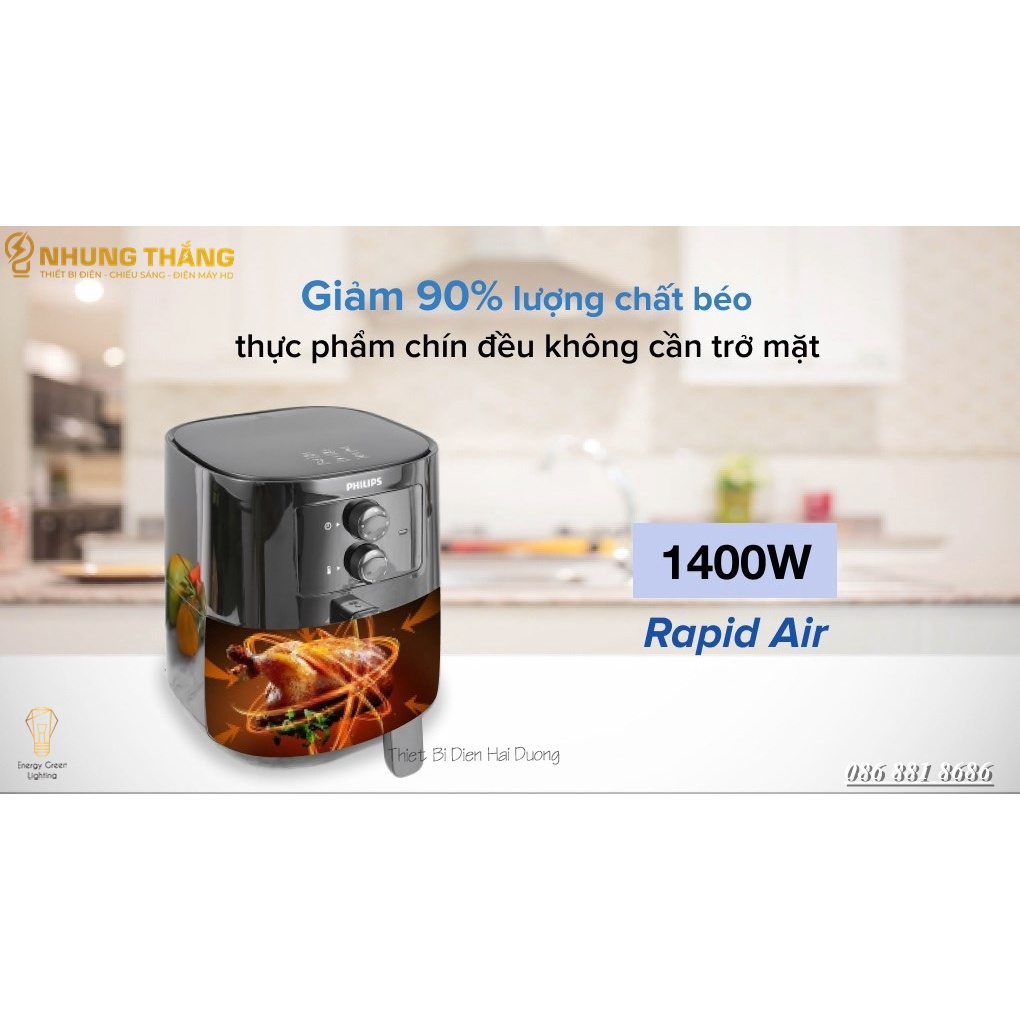 Nồi chiên không dầu Philips HD9200/90 2.4Lít Công Suất 1400w - Loại Bỏ 80% Chất Béo, Chống Dính Hoàn Hảo, Làm Chín Nhanh