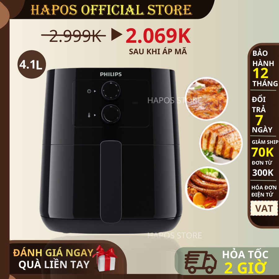 Nồi chiên không dầu Philips HD9200 giảm chất béo trong đồ ăn - HAPOS BH 24 tháng chính hãng