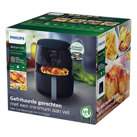 Cuộc sống hiện đại luôn kéo theo những hệ lụy của nó như vấn đề an toàn cho sức khỏe con người.Vì vậy nhu cầu ăn thực phẩm có lợi cho sức khỏe tăng cao, đặc biệt được chú trọng về chất béo. Việc loại bỏ chất béo ảnh hưởng trực tiếp đến cơ thể con người và các nguy cơ bệnh tật. Vì vậy hãng Philips của Hà Lan đã cho ra đời dòng sản phẩm Nồi chiên không dầu philips cỡ lớn HD9650/91 Airfryer XXL với công nghệ Twin TurboStar giúp loại bỏ đến 90% lượng dầu mỡ so với cách chiên thông thường. Philips HD9650 với nhiều công nghệ mới hiện đại như: công nghệ loại bỏ tối đa mỡ thừa Twin TurboStar mang đến những món chiên thơm ngon, giòn rụm mà lại tốt cho sức khỏe của cả gia đình, Airfryer XXL sử dụng dòng khí nóng đối lưu để chiên rán thức ăn với rất ít dầu hoặc không cần dầu. Airfryer mạnh mẽ nhất giúp nấu nướng nhanh hơn, giỏ QuickClean có lưới chống dính dễ dàng làm sạch trong 90 giây. Với dung tích lớn XXL nồi chiên có thể chứa cả gà nguyên con hoặc 1,4 kg khoai tây chiên cho cả gia đình thỏa mái thưởng thức. Nồi chiên Philips HD9650 kích thước lớn XXL thật sự là lựa chọn hoàn hảo để bảo vệ sức khỏe cho gia đình bạn.