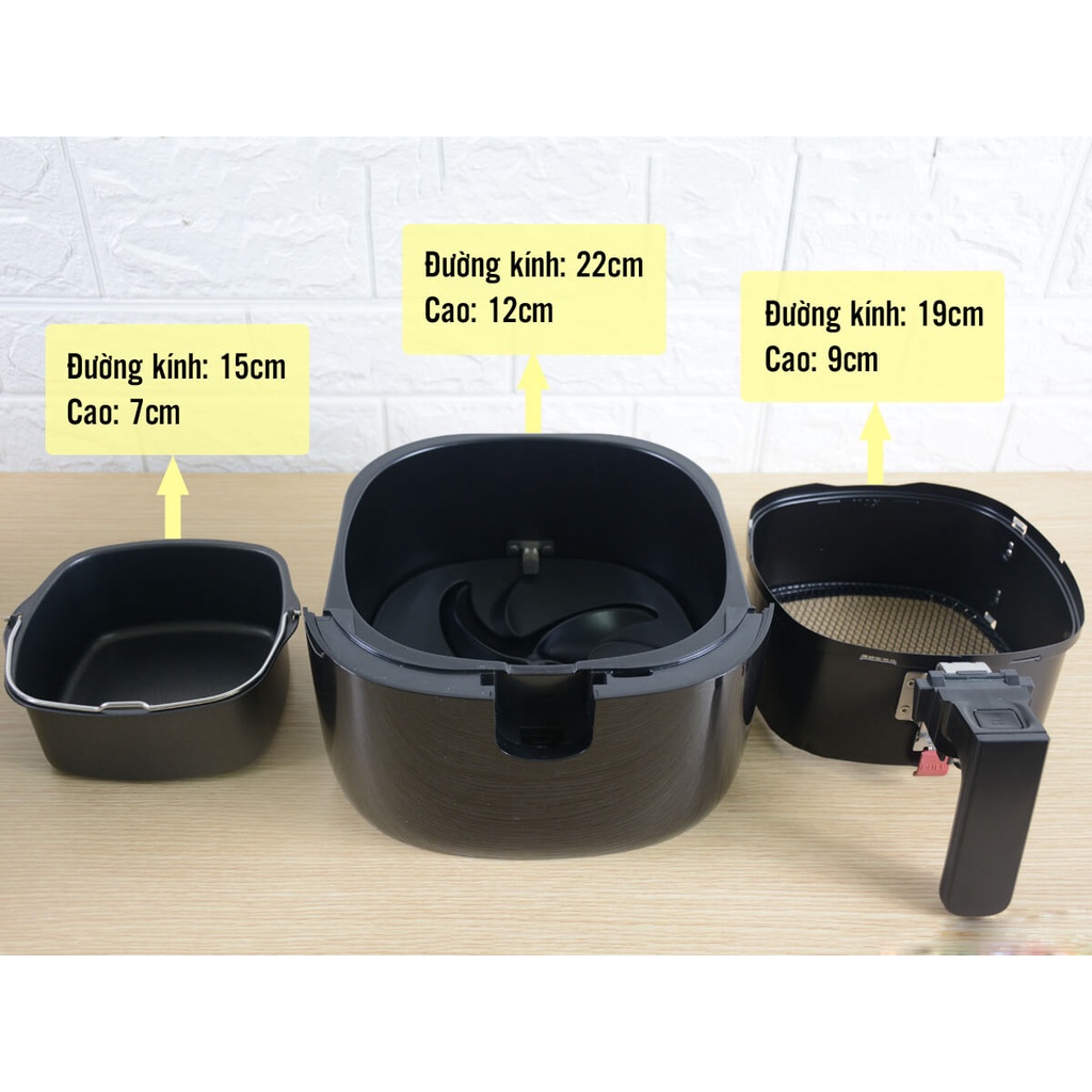 - Dung tích: Giỏ chiên (2,4 lít), Nồi chiên (4,5 lít)