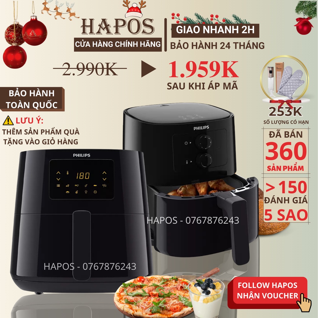 Thiết Bị Điện Gia Dụng > Đồ gia dụng nhà bếp > Nồi chiên không dầu || Nồi chiên không dầu Philips HD9270, HD9220, HD9252, HD9200 giảm chất béo trong đồ ăn - HAPOS BH 24 tháng chính hãngCòn hàng