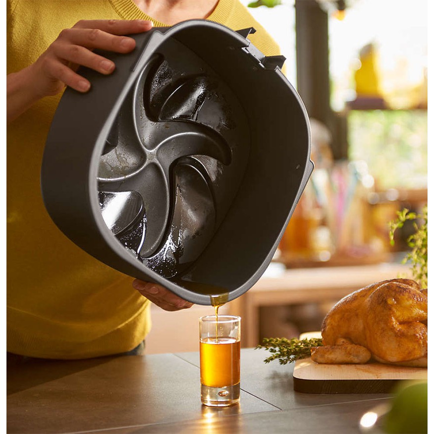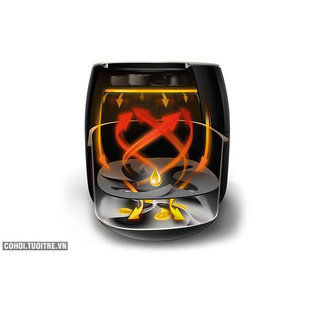 - Công nghệ Twin TurboStar (công nghệ không khí nóng): Sự kết hợp giữa sức nóng mạnh mẽ (công suất lớn) và động cơ với công nghệ không khí nóng Twin TwinStar làm cho không khí nóng trong nồi bay quay xung quanh giống như một cơn lốc xoáy khổng lồ trong suốt buồng nấu ăn. Quá trình này loại bỏ nhiều chất béo dư thừa từ thực phẩm và lấy chính nó rán nó. Cho 1 chế độ ăn lành mạnh hơn bao giờ hết