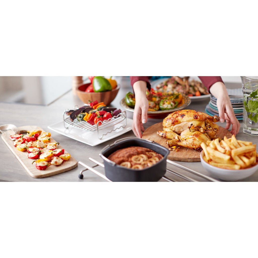 Tích hợp nhiều chương trình: Chiên, nướng, rang và thậm chí hâm nóngLau chùi rất nhanh và dễ dàng nhờ giỏ đựng Airfasher QuickClean với miếng lưới có thể tháo rời.