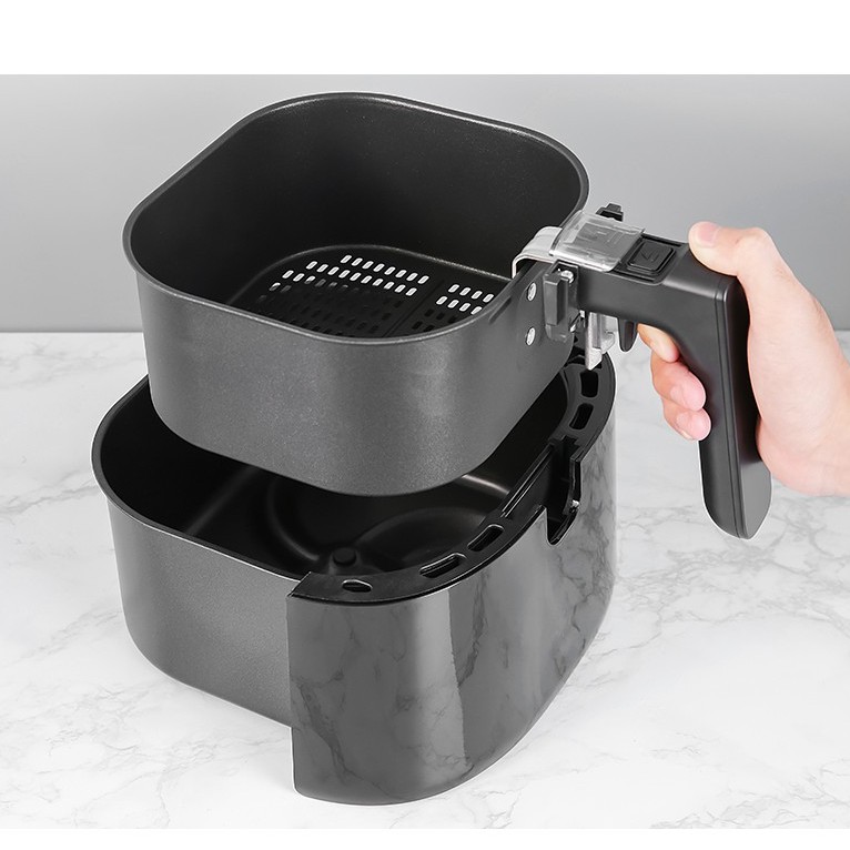 - Khay chứa thực phẩm dung tích 2.4 lít, chiên được khoảng 0.6 kg thức ăn.