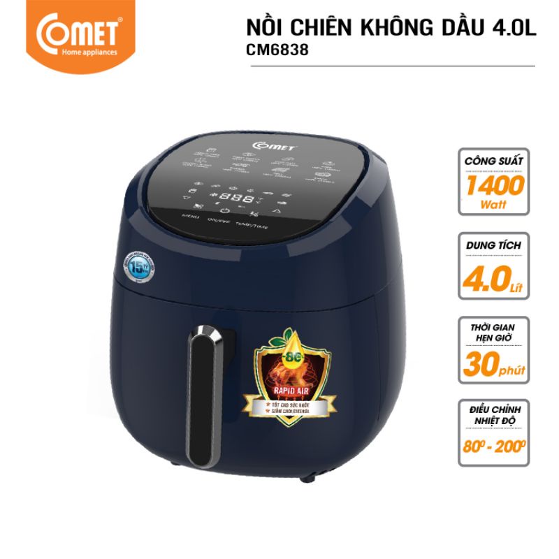 Thiết Bị Điện Gia Dụng > Đồ gia dụng nhà bếp > Nồi chiên không dầu || [Mã ELMALL10 giảm 10% đơn 500K] Nồi chiên không dầu phím cảm ứng điện tử COMET 4L - CM6838Còn hàng