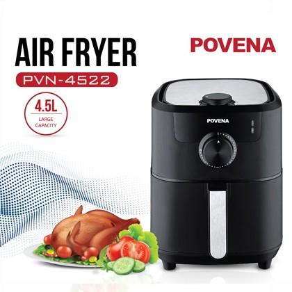Nồi chiên không dầu Povena PVN-4522 cho các món chiên, quay nướng vàng đều giòn rụm mà không cần đến dầu ăn, giảm tối đa chất béo, tốt cho tim mạch.