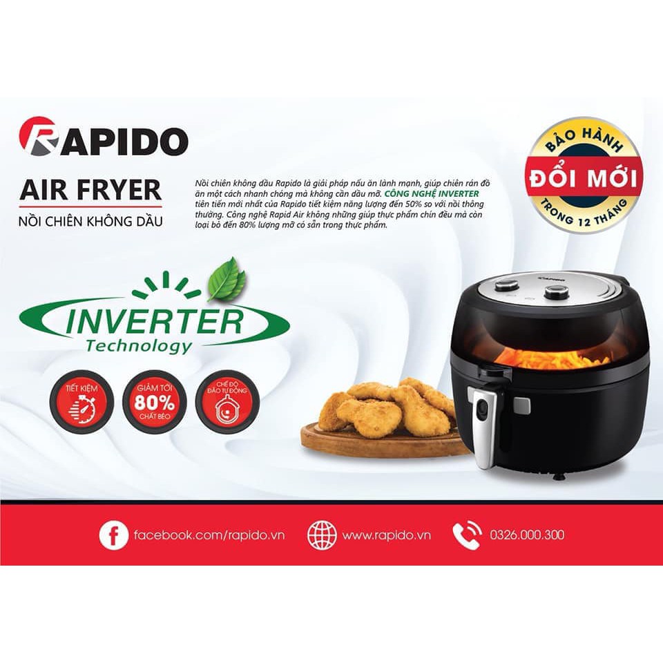 Thiết Bị Điện Gia Dụng > Đồ gia dụng nhà bếp > Nồi chiên không dầu || [Mã 273ELHA100K0 hoàn 7% đơn 500K] NỒI CHIÊN KHÔNG DẦU RAPIDO 6.5 lít - Công suất 1350W cơCòn hàng