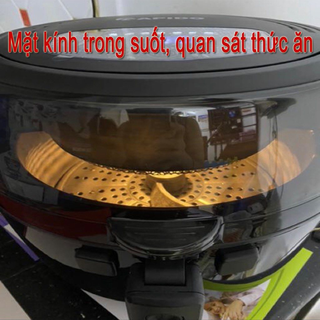 - Mặt kính cường lực trong suất chịu nhiệt cao, người dùng có thể dễ dàng quan sát quá trình thực phẩm được chiên từ đó điều chỉnh nhiệt độ và thời gian phù hợp.