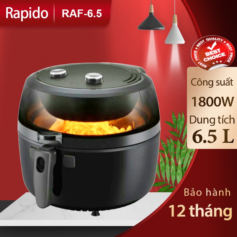 Nồi chiên không dầu Rapido 6.5L 1800W, bảo hành12 tháng - Phiên bản điều khiển cơ, điều khiển điện tử