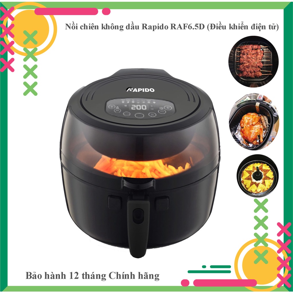 Nồi chiên không dầu Rapido RAF-6.5D điều khiển điện tử là sản phẩm thương hiệu Đức với dung tích 6.5L giúp chiên rán đồ ăn một cách nhanh chóng, hiệu quả, lành mạnh.Công nghệ inverter tiết kiệm điện tối đa