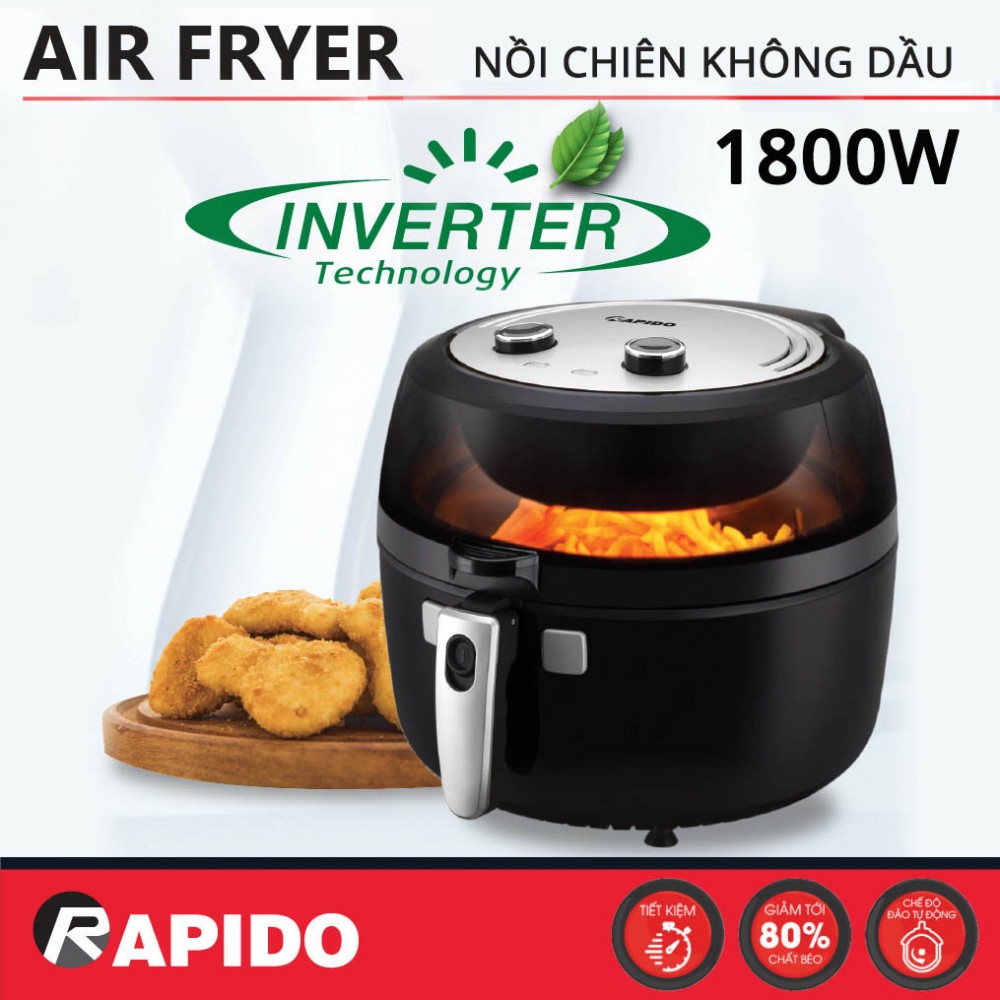 Nồi Chiên Không Dầu Rapido 6.5L, Công Nghệ Inverter, An Toàn, Giữ Nguyên Giá Trị Dinh Dưỡng Của Thức Ăn