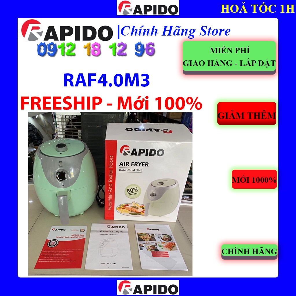 [Mã ELHAMS5 giảm 6% đơn 300K] Nồi chiên không dầu Rapido RAF4.0M3 Màu Xanh - Rapido RAF-4.0M3