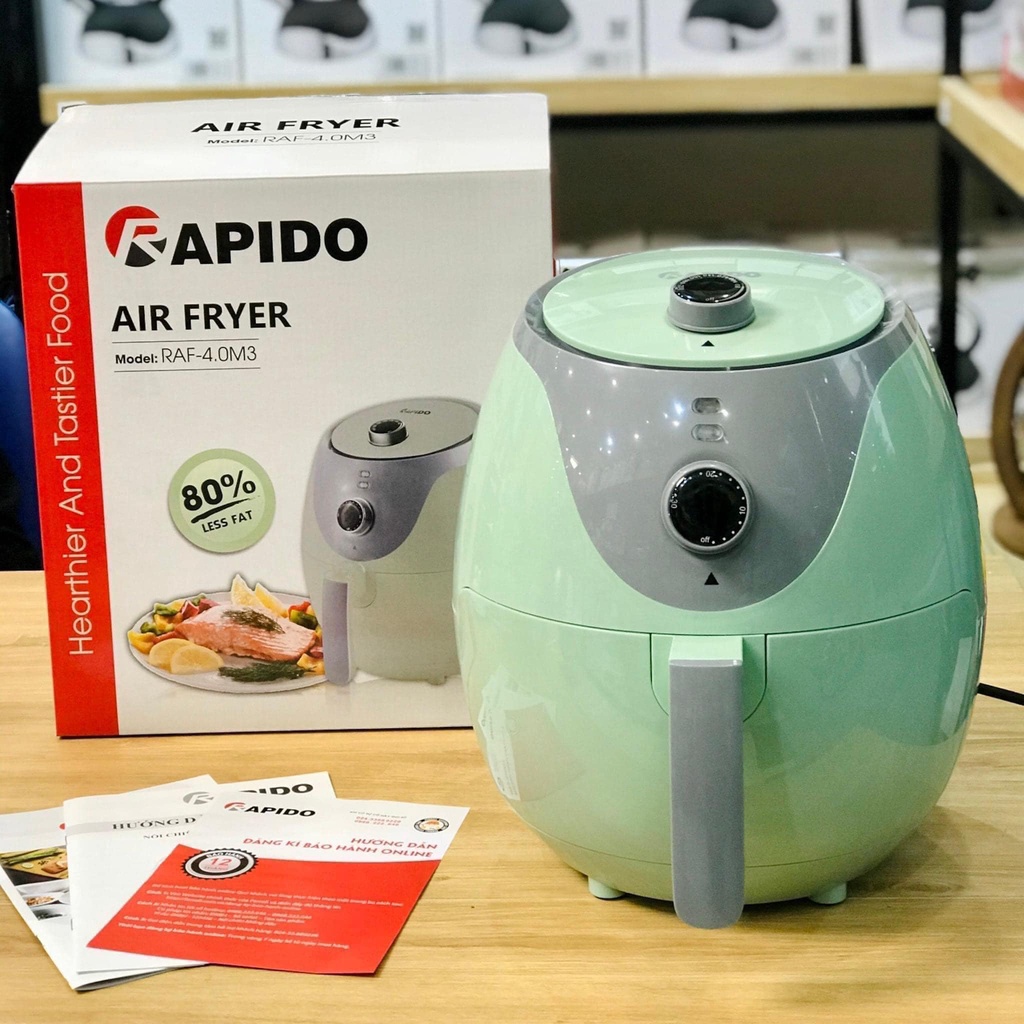 Giới thiệu Nồi Chiên Không Dầu Rapido Xanh Pastel 4L 1200W RAF-4.0 Được Bảo Hành Chính Hãng 2 Năm
