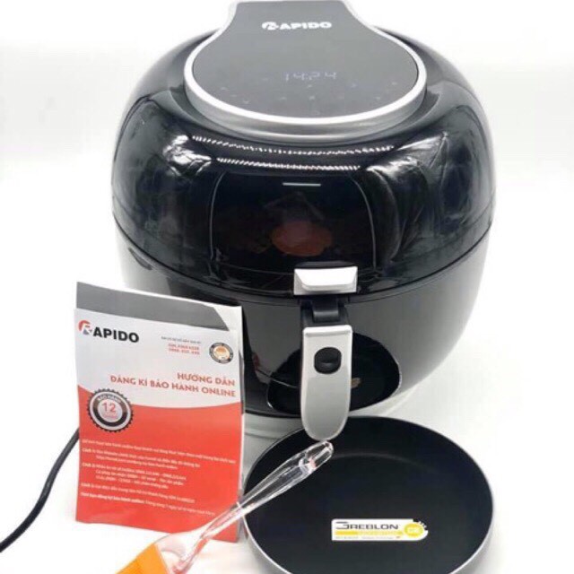 Nồi chiên không dầu Rapido RAF6.5M LUX Inverter 1800w 6.5L KÈM QUÀ TẶNG bảo hành 12 thángTrong mỗi nồi chiên đều kèm 1 phiếu bảo hành của hãng, 1 quyển công thức nấu ăn và 1 sách hướng dẫn sử dụng.Khi quý khách nhận nồi, vui lòng kích hoạt bảo hành theo các cách hướng dẫn trên phiếu. Quý khách vui lòng lấy seri kích hoạt phiếu dưới đáy nồi.